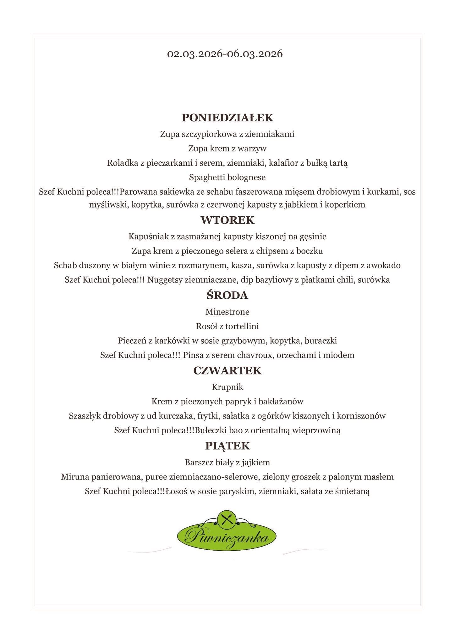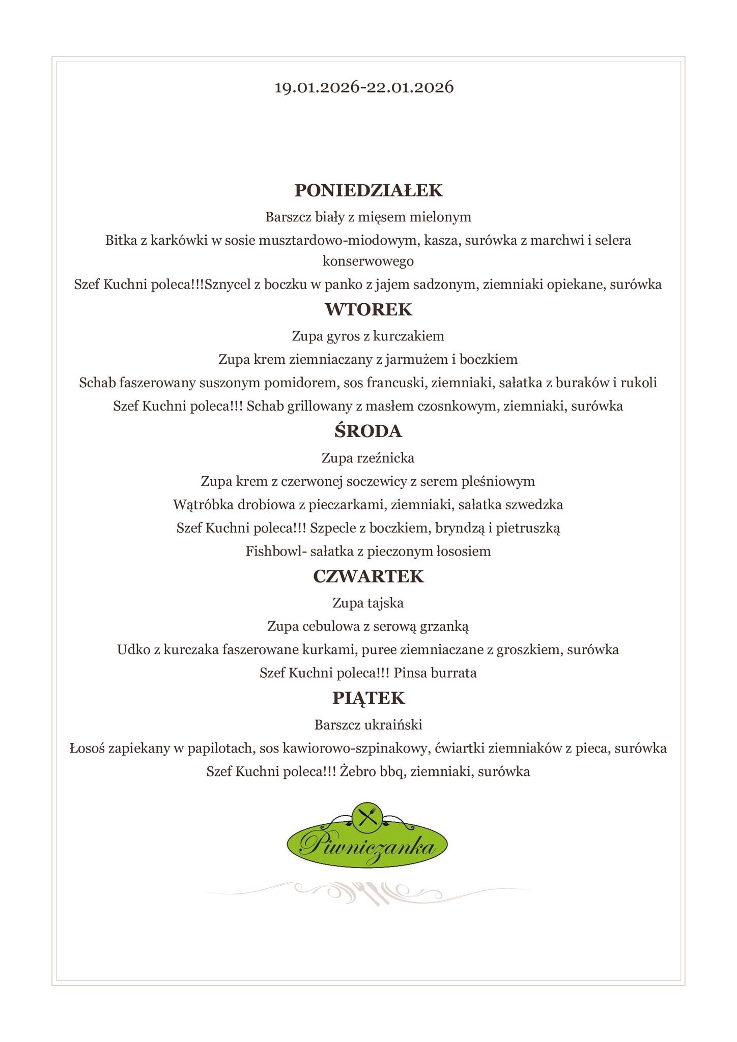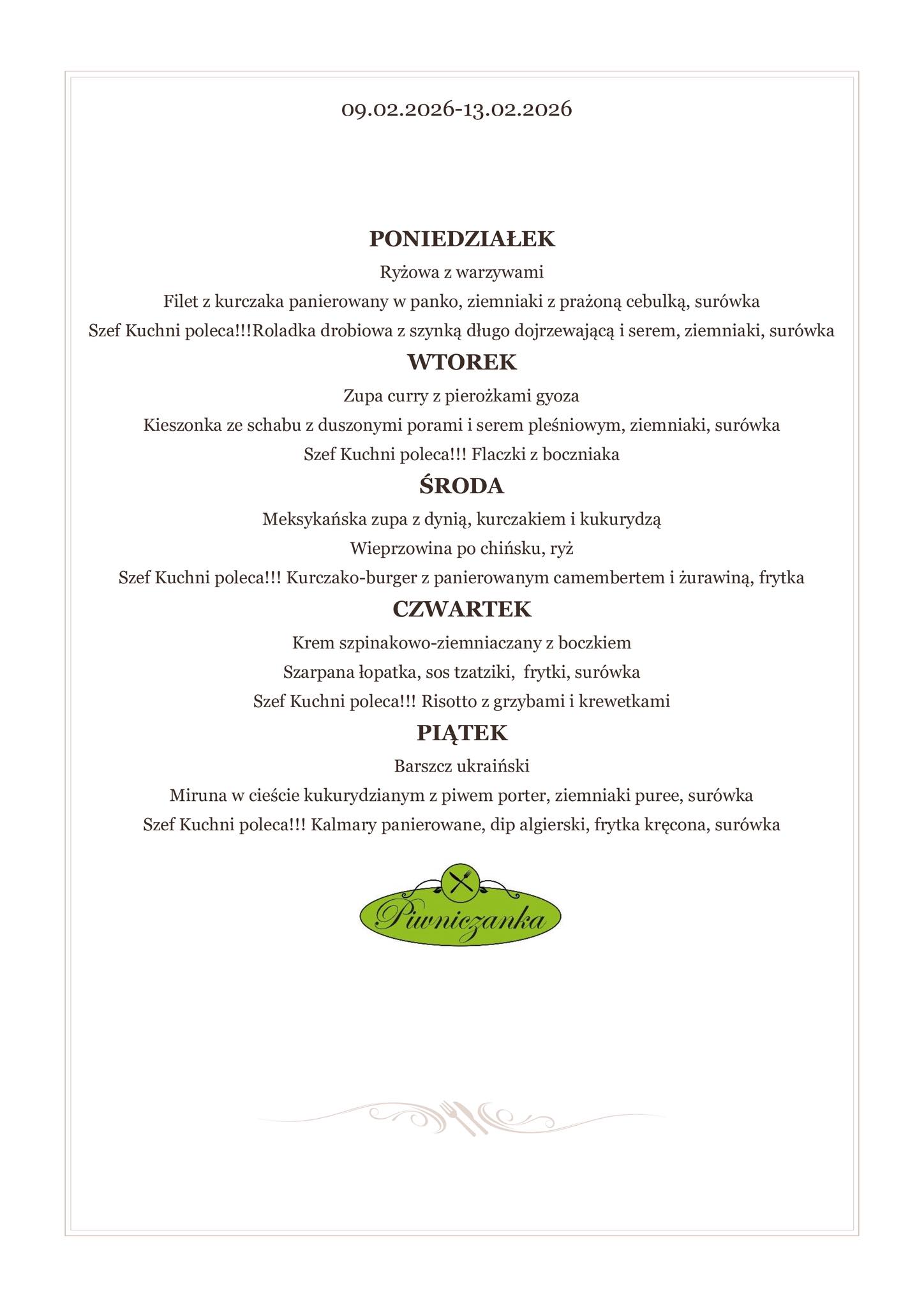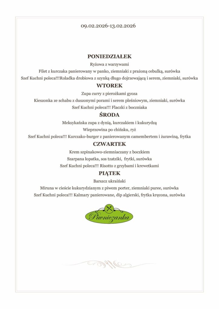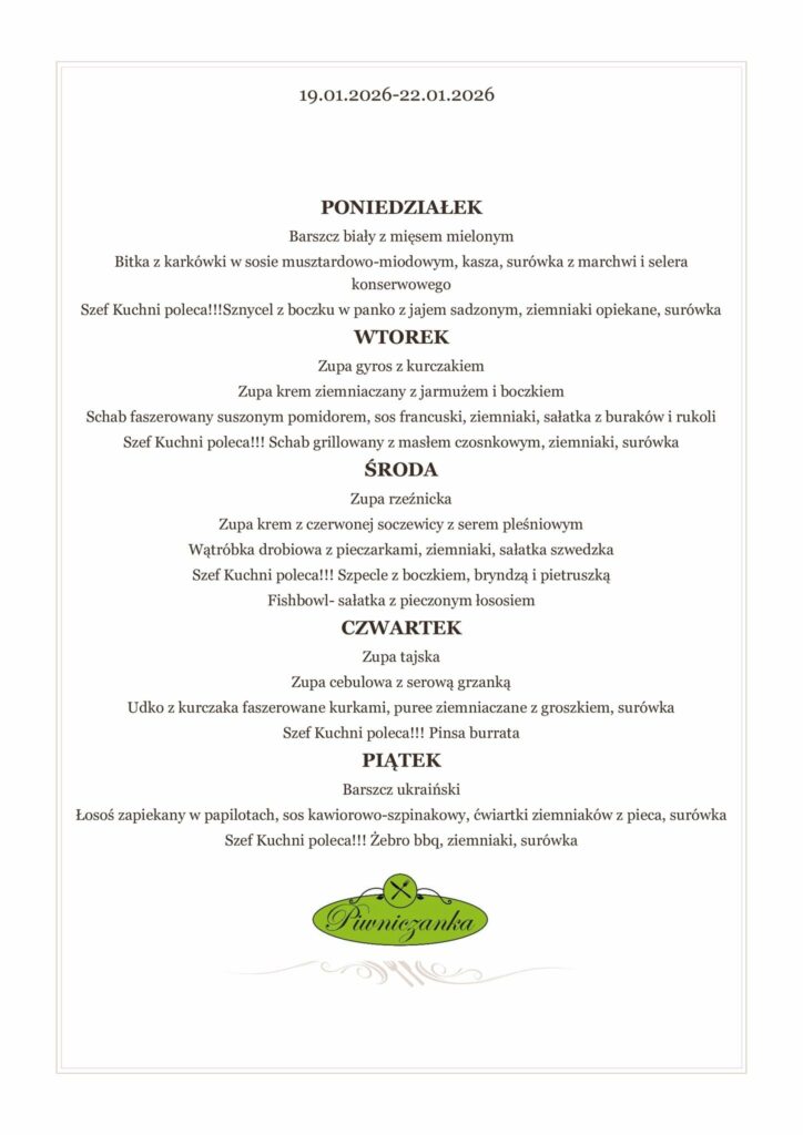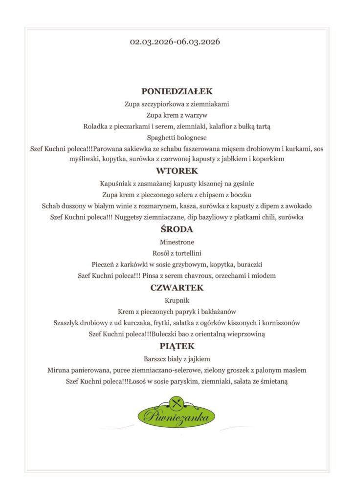 Nasze menu zmienia się wraz z porami roku i inspiracjami szefa kuchni.